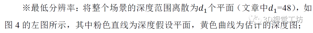 关于代价体:代价体(Cost Volume)是三维的,存储时为4D的tensor。我们可以理解为:代价体每一个位置存储的是一个F维的向量而不是标量。如图2所示,空间分辨率H×W越高,平面假设数D越多,深度间隔I越小,那么得到的深度图质量越高;同时显存占用越大、耗时越长。那么,有没有一种可以权衡精度和效率的方法呢?
