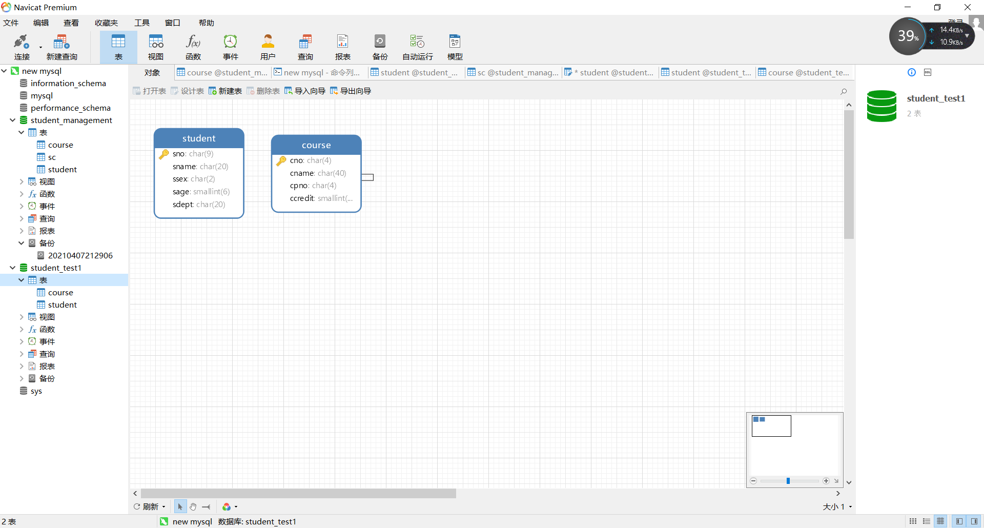 方法一:在navicat中新建表的时候点击一个字段的键,出现钥匙就说明该属性为主键,点击模型再点击表会出现ER关系图,点击左下角新建关系,可以选中某个属性进行创建外键,选择参照表和参照列进行保存,再点击ER关系图就会出现外键连接的线,说明创建成功。