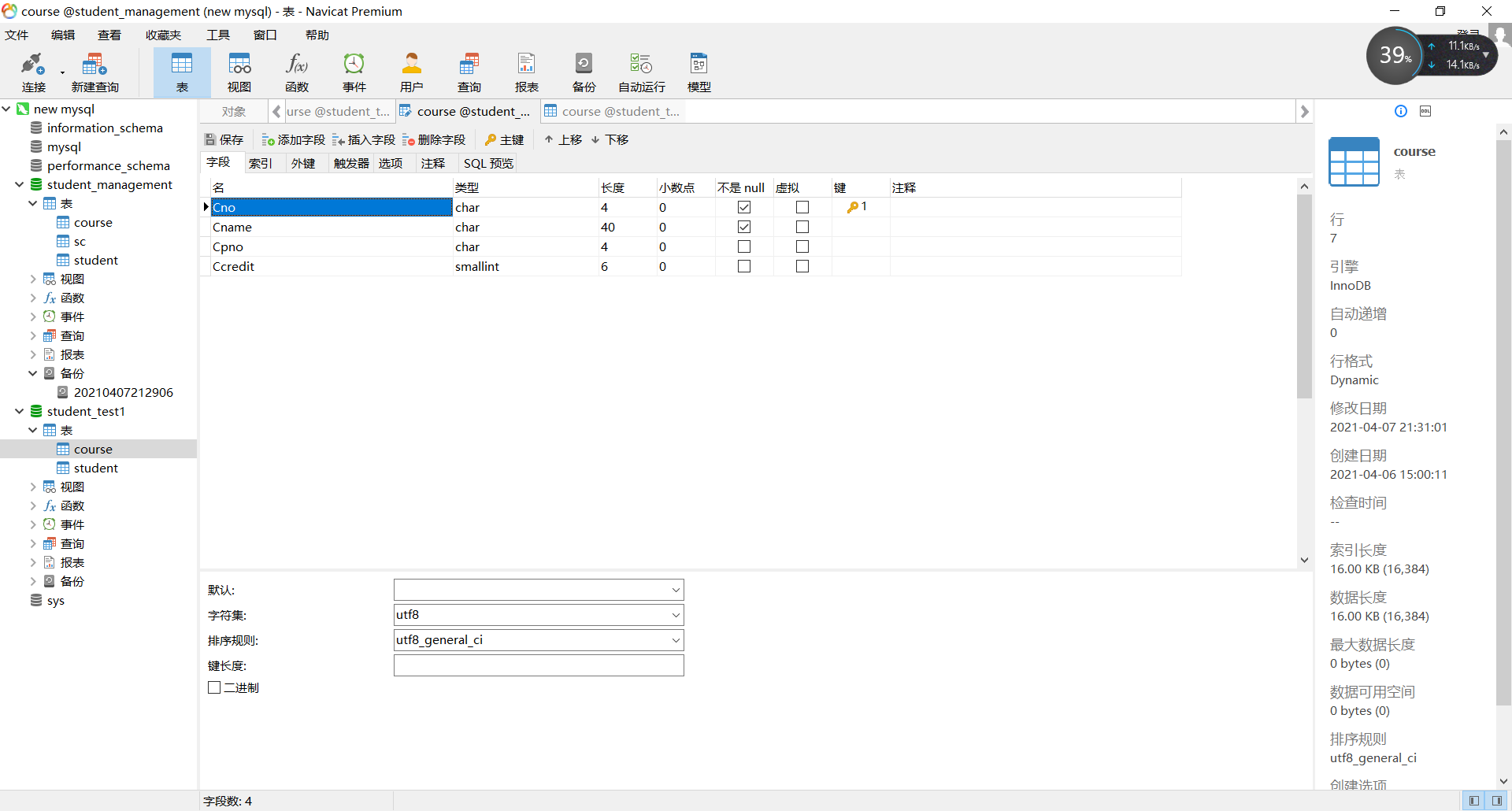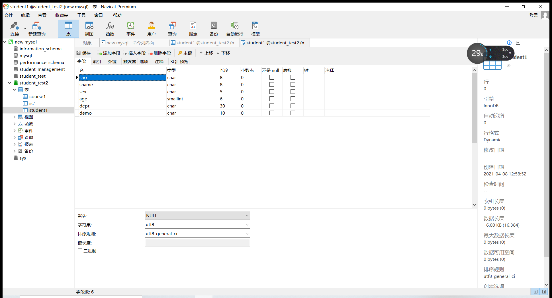 数据库原理及应用——熟悉数据库管理工具、数据库和表的创建与管理