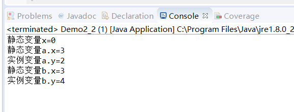 实验给出的源程序是错误的,对于成员变量y不是static类型,也就不是静态变量,不可以直接通过类名访问,需要实例化,用对象访问。对于静态变量,通过对象改变值,而最后确定的值是最后一次所改变的值。 | |