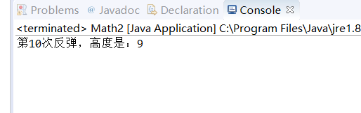 三、源代码 //计算10000落下球,第10次高度 import java.util.Scanner; public class Math2 { public static void main(String[] args) { int height = 10000; int i; for(i = 1 ; i <= 10 ; i++) { height = height>>1; } i--; System.out.println("第"+i+"次反弹,高度是:"+ height); } } 四、实验结果测试、收获与体会: 对位移运算符的规律进行再一次了解 |