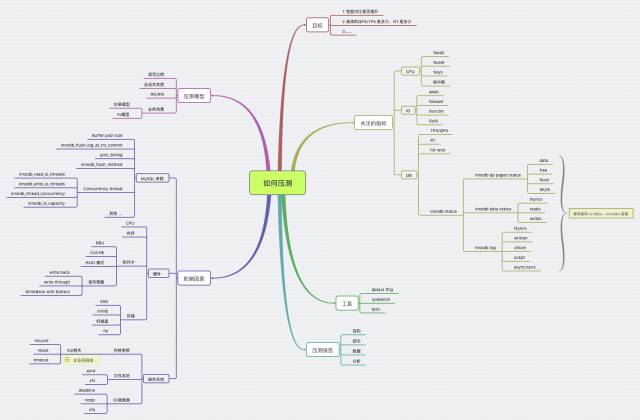 这个是之前和叶金荣讨论关于性能压测的话题之后整理的思维导图。具体的地址在http://vdisk.weibo.com/s/dCZasgFETrgn/1445265070,涵盖数据库压测的所有内容。当然也有不足之处,欢迎大家给予建议和补充,能够使数据库压测结果更精准 ,为数据库性能/可用性评估提供有力帮助。