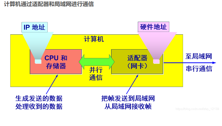 为了再总线上实现一对一的通信,可以使每一台计算机的适配器拥有一个与其他适配器不同的地址。仅当数据帧中的目的地址与适配器中ROM中存放的邮件地址一致时,该适配器才能接受这个数据帧。