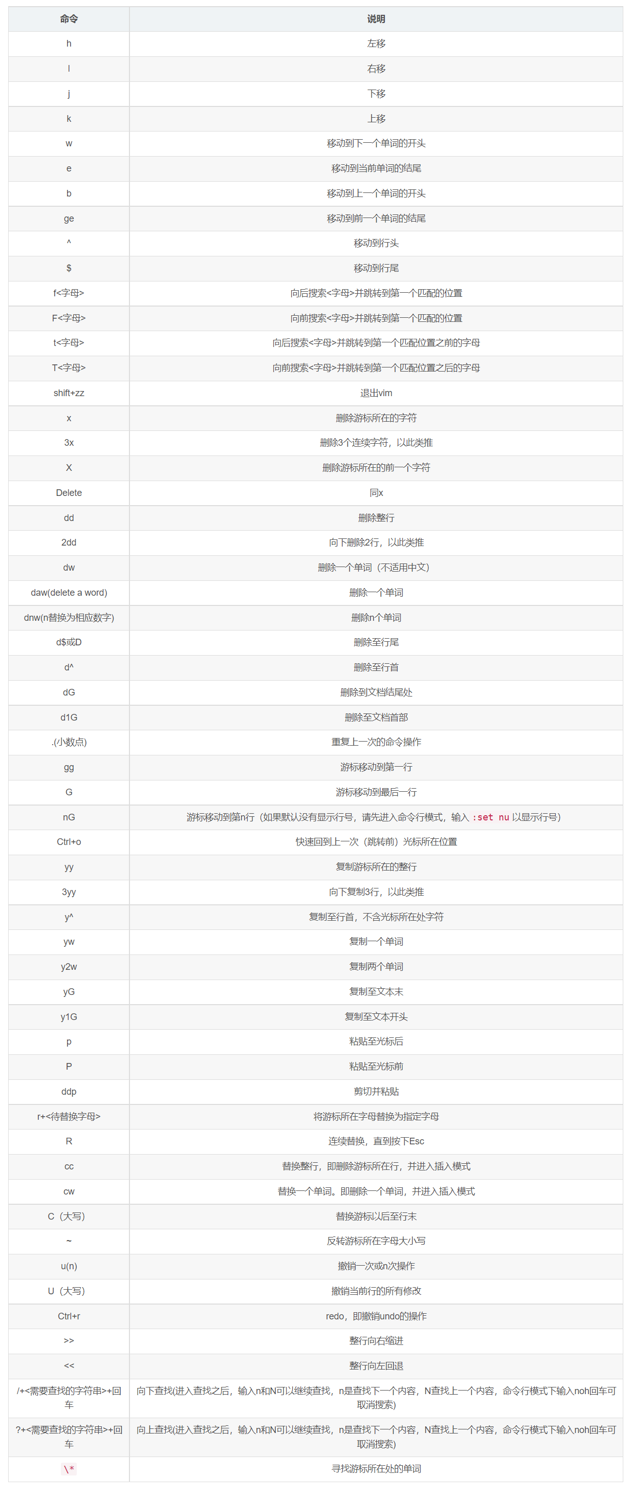 普通模式的命令