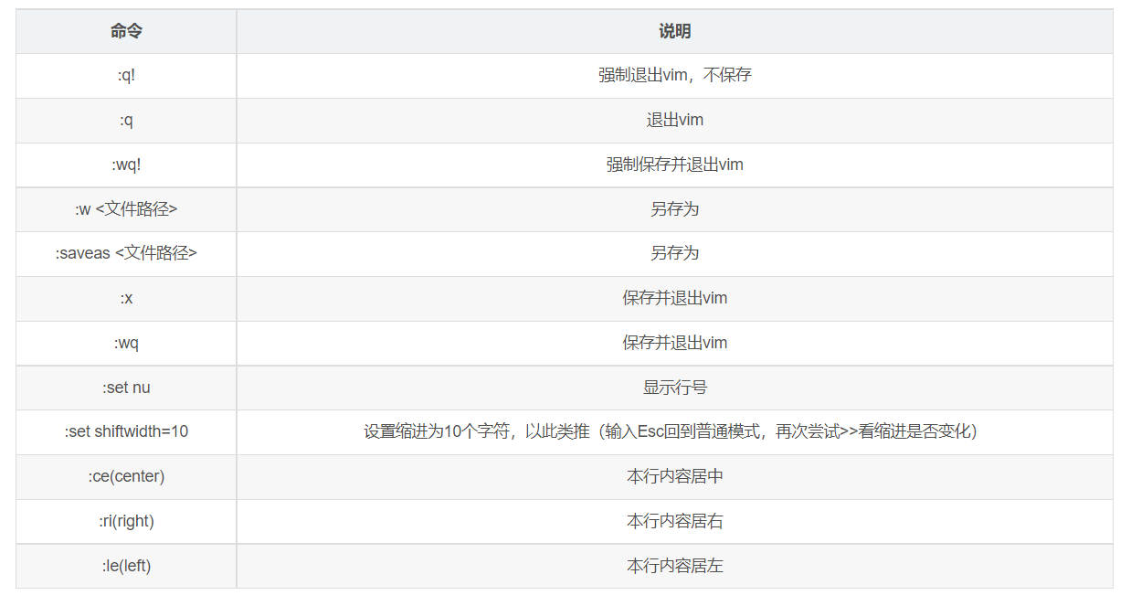 命令行模式的命令