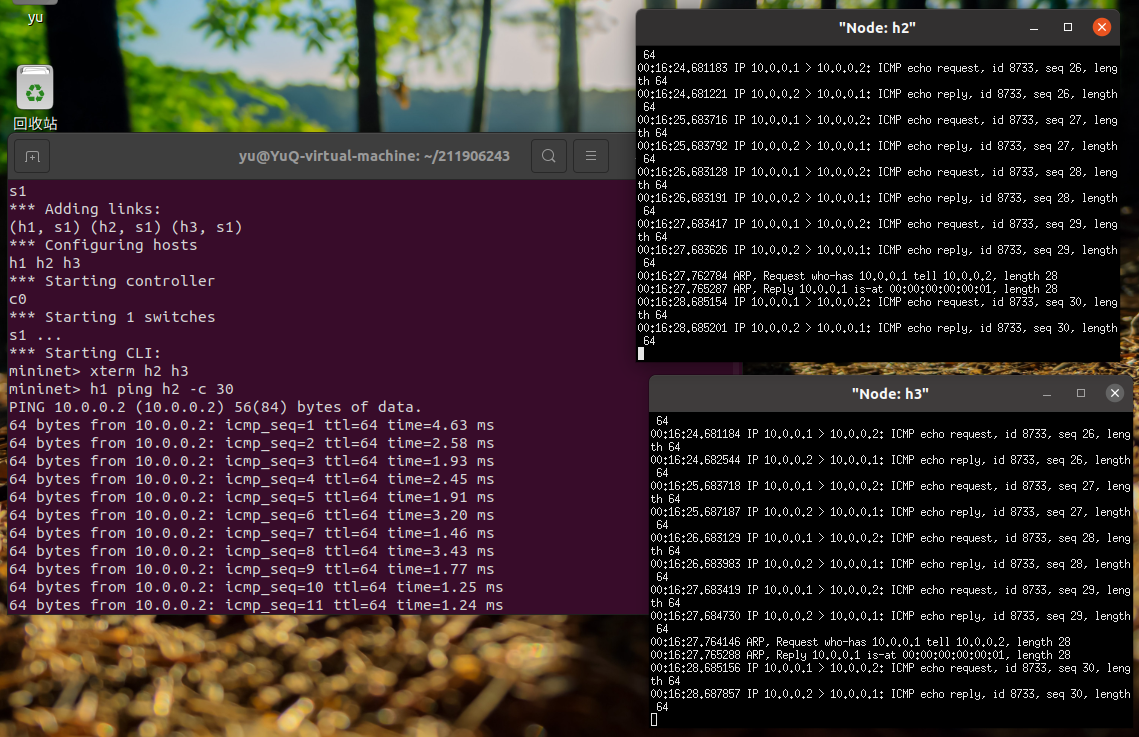 - 在虚拟机中安装Ubuntu 20.04 Desktop amd64,并完整安装Mininet;