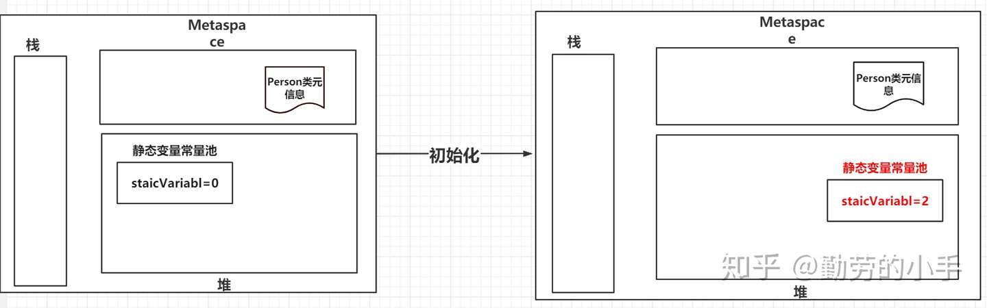 连接阶段会对静态变量的值进行默认赋值,此时Person类的staicVariabl 赋值为0;