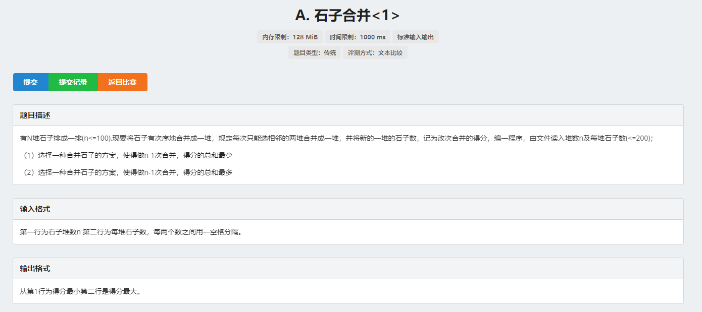 - 典型试题:整数划分,凸多边形划分、石子合并、多边形合并、能量项链等。