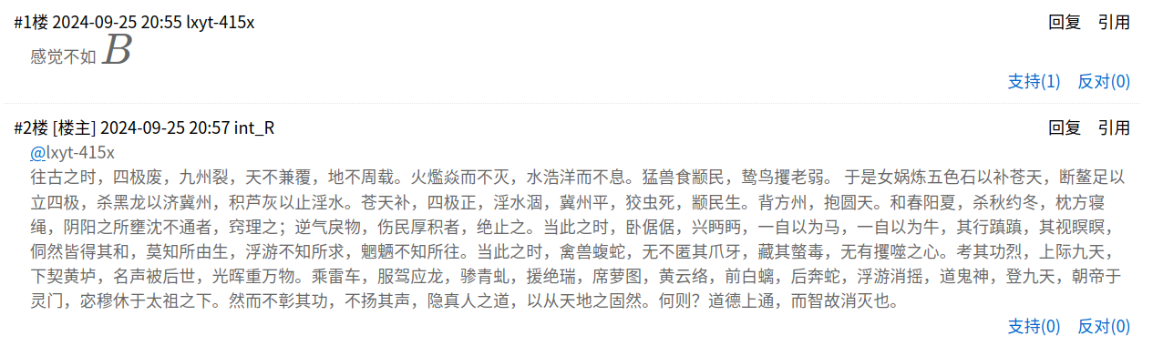 已知 int_R 先后在博客和评论区里发了两段无名古文。