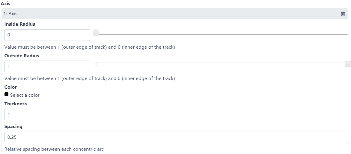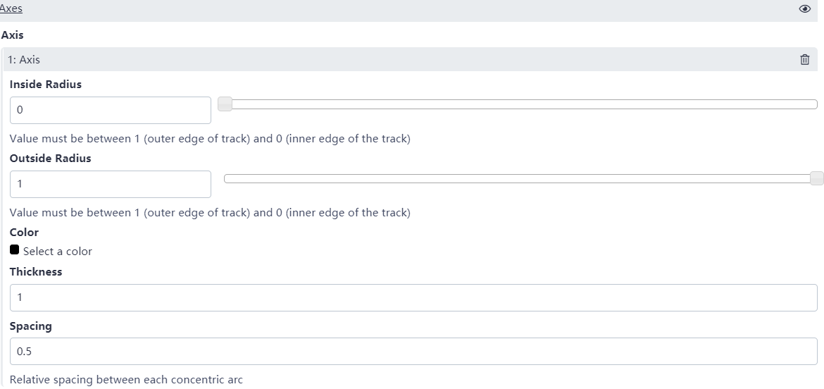 此处还添加了Axes小板块,设置radius(和track的位置关系),颜色为黑色,厚度为1,间隔为0.5: