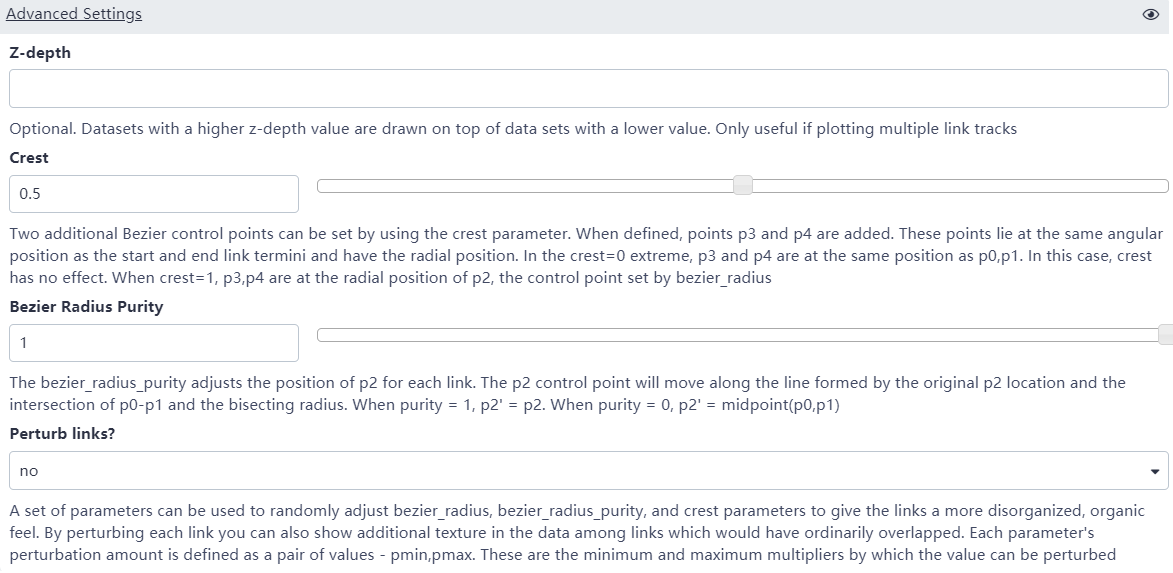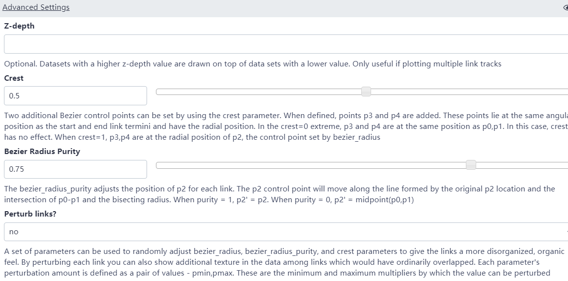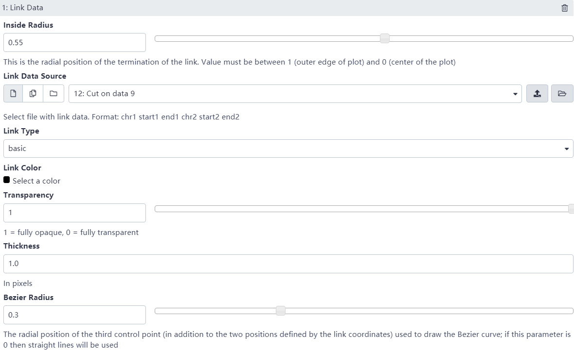 半径为0.55,选择文件12号,link类型为basic,选择黑色,透明度选择不透明,厚度为1,Link的弯曲度也可以设置,在Bezier Radius设为0.3。