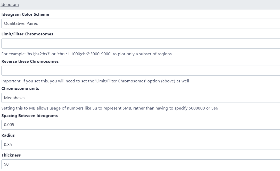 设置序列的配色方案,长度单位Mb,间隔0.005,半径0.85,厚度50。