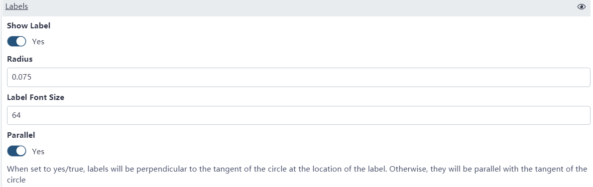 设置标签,半径为0.075,字体大小为64,以及位置: