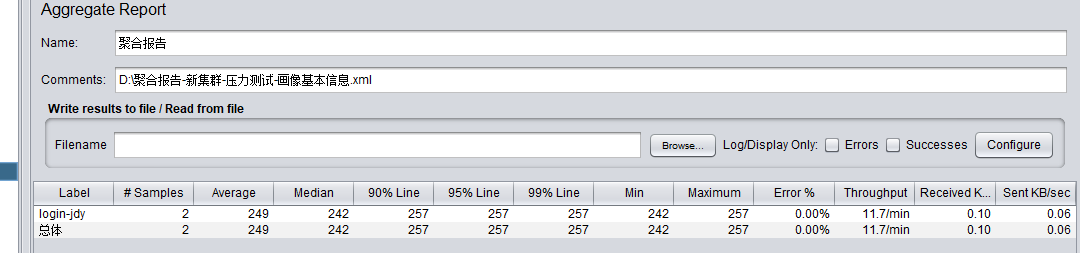 在进行压力测试时,结果部分可以通过聚合报告来查看,其中包含指标如下