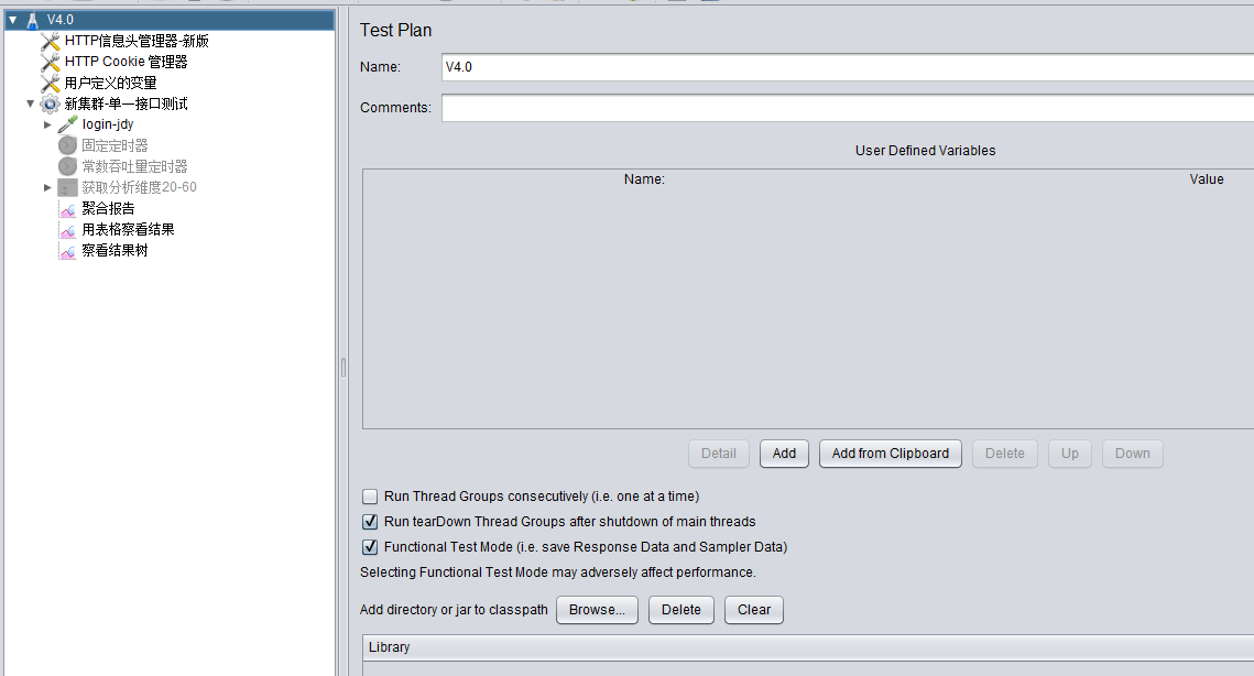 1) Test plan :测试计划,创建一个测试脚本的基础,后续的步骤都会存储在这里,是其他元件的容器