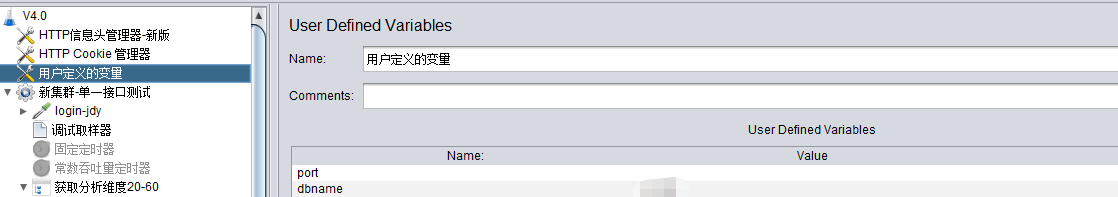3)User Defined Variables :用于存储一些用户自己定义的变量,在后面的请求中可以进行调用。