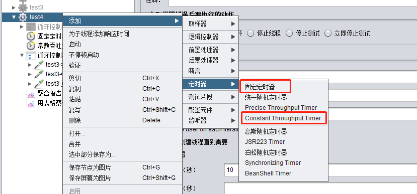 如果想要实现同一秒发送几个请求或者几秒钟发送一个请求的效果的话,则需要添加定时器来辅助达成,比较常用的包括固定定时器以及常熟吞吐量定时器(Constant Throughput Timer)