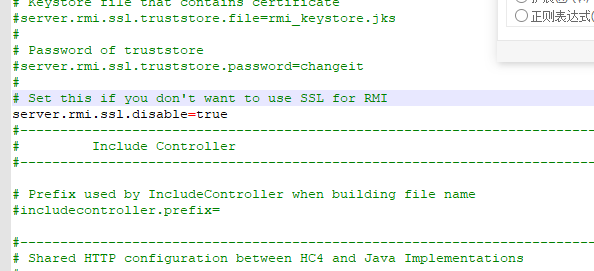 1. 打开jmeter路径下的jmeter.properties文件,修改server.rmi.ssl.disable=false,改为true,并去掉注释