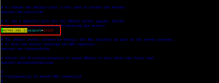 然后再将server.rmi.localport后面的端口号修改与上面相同,保存文件,重新启动jmeter服务即可