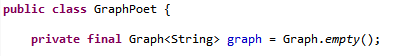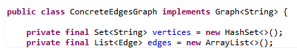 publicclass ConcreteEdgesGraph<L> implements Graph<L>{ ... }class Edge<L>{ ... }