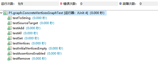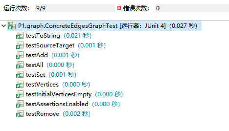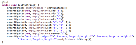 | checkRep | 检查不变性,edges中边的source与target在vertices中,权值weight大于0 |