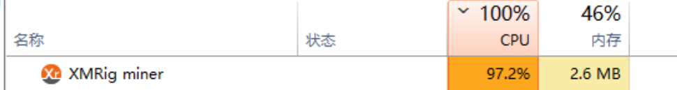 再来看看任务管理器,发现CPU拉满了,能够确定该靶机中了挖矿病毒。