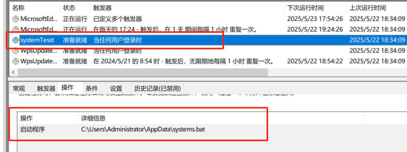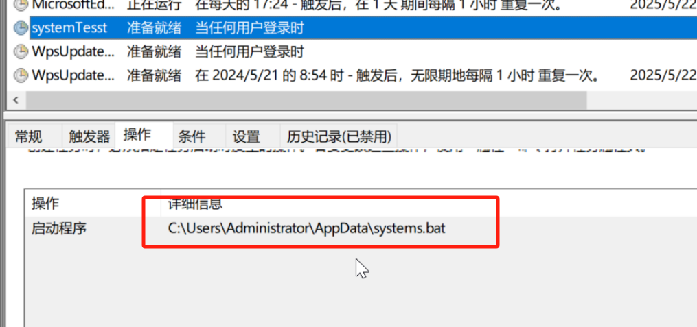 还记得前面分析的计划任务吗?去看看他的位置和bat文件中写的脚本内容。