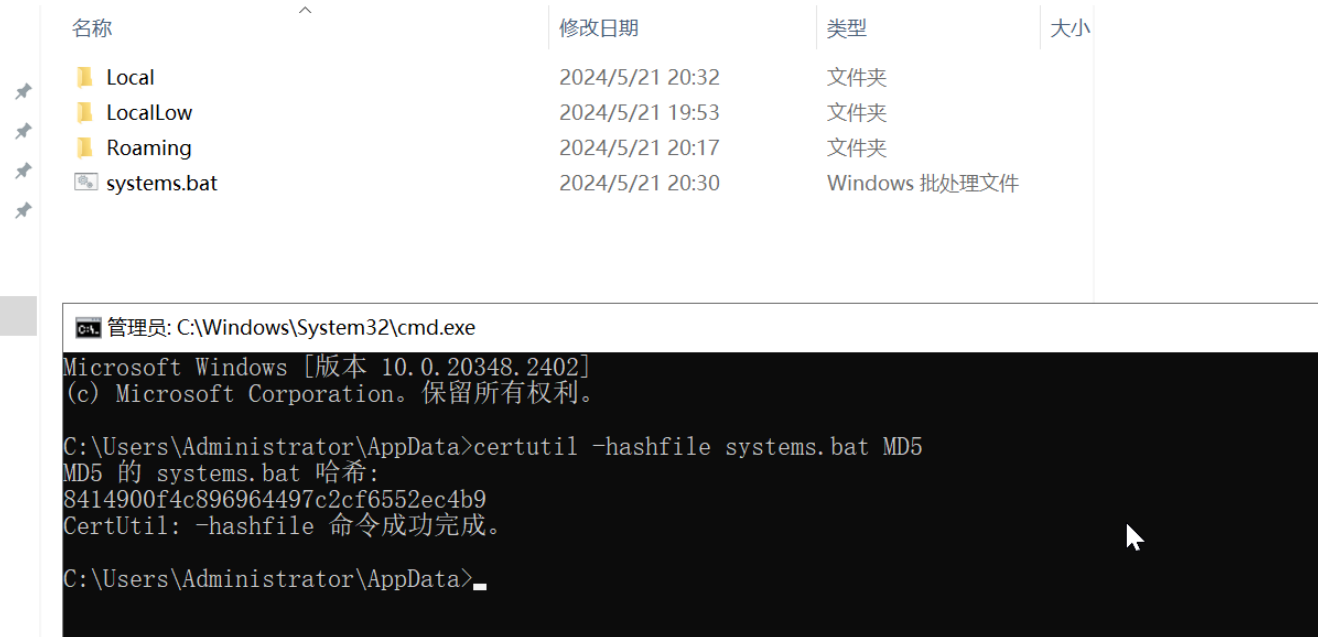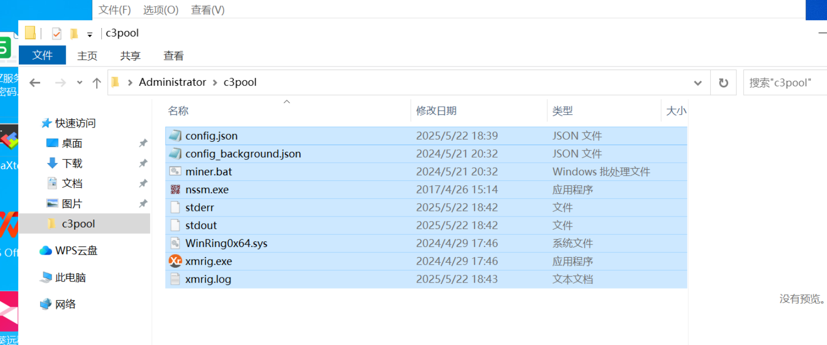 并没再次弹出CMD窗口,CPU占有率也恢复正常了,在administrator目录下也不会自动生成(.bat下载)挖矿程序目录。