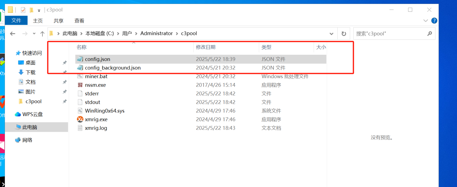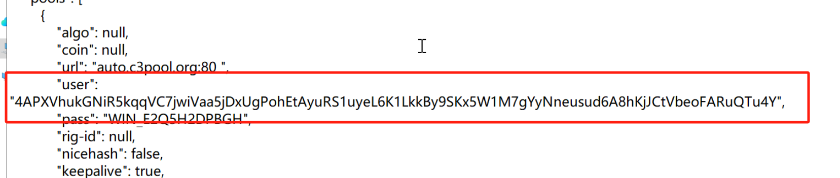 来到挖矿程序的目录下,打开config.json文件。这文件名就能一眼看出是挖矿程序的配置文件。