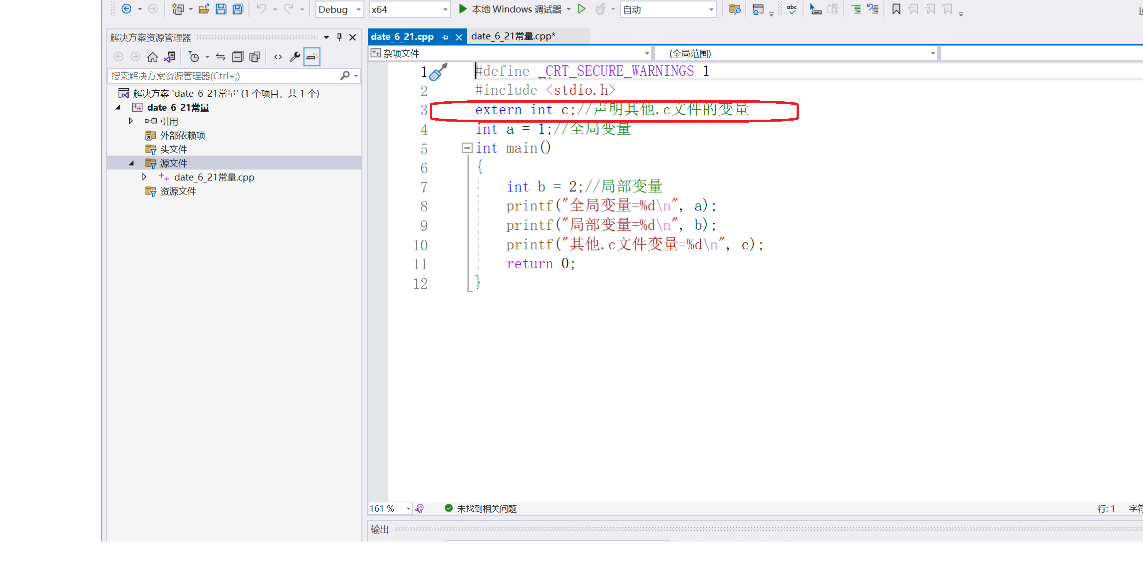 其他.c文件的变量:需要使用extern声明一下变量
