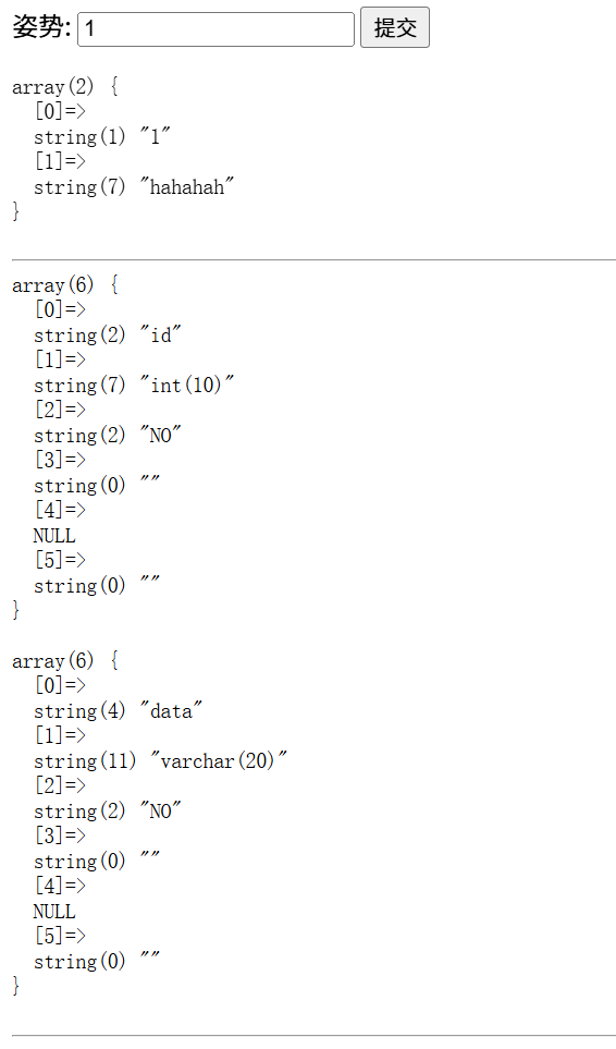 在输入框里输入数字会有回显数据,这边猜测应该就是查询id,默认显示的应该就是words表,这时我的大胆猜测一下后端代码