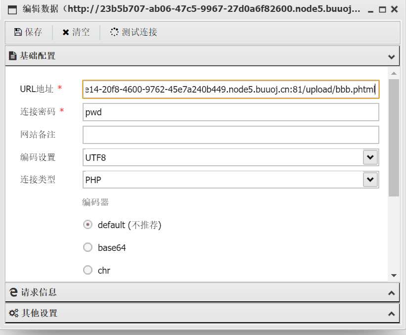接下来为了方便我们使用webshell连接工具连接服务器,我这边使用的是蚁剑