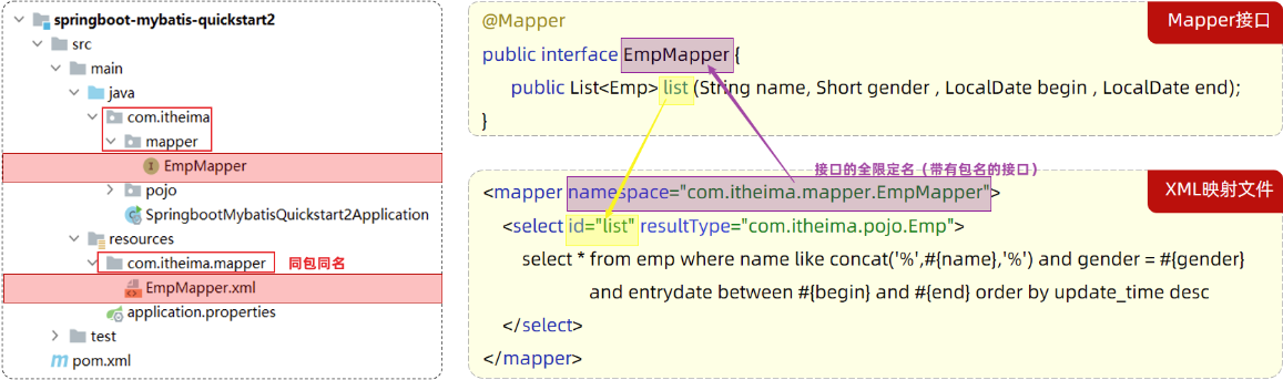 <select id="list" resultType="com.itheima.pojo.Emp">