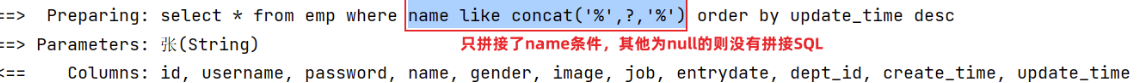 select id, username, password, name, gender, image, job, entrydate, dept_id, create_time, update_time from emp