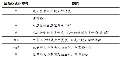 除了上表的格式化符号,有时还需要调整格式化符号的显示样式,例如是否显示正值符号“+”,下表中列出了辅助格式化符号。