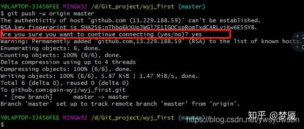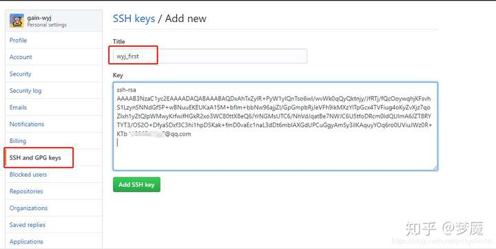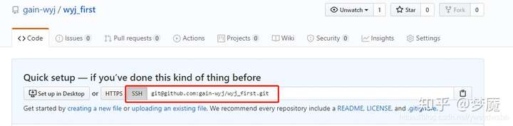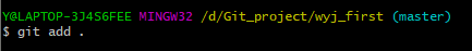 然后执行指令:git remote add origin git@github.com:gain-wyj/wyj_first.git