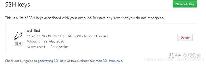 然后打开SSH keys菜单, 点击Add SSH key新增密钥,填上标题,跟仓库保持一致吧,好区分。