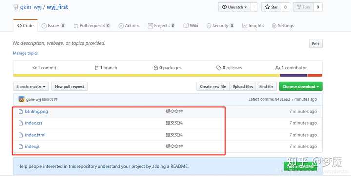 首先,进入到wyj_first项目目录,还记得创建仓库成功后的那个页面吧,指令都在呢。