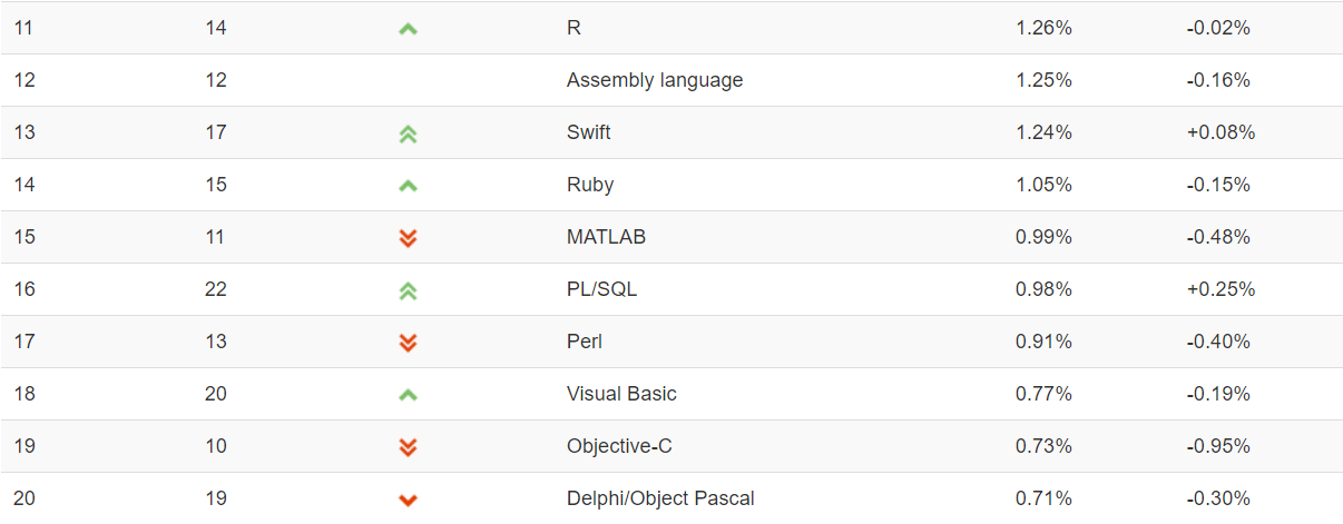 我们从2月榜单中看到了因Swift兴起而逐渐没落的Objective-C,本期另一个失落的主角换成了:Delphi/Object Pascal。