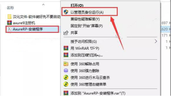 3.鼠标右击【AxureRP-安装程序】选择【以管理员身份运行】。