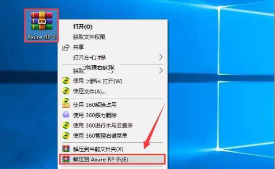 1.鼠标右击【Axure RP 9】选择【解压到Axure RP 9】。