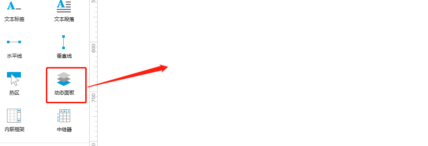 在元件库位置,找到动态面板元件,鼠标选中拖拽到操作面板即可