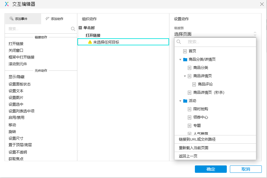 2.设置单击时打开链接,选择要跳转到的页面