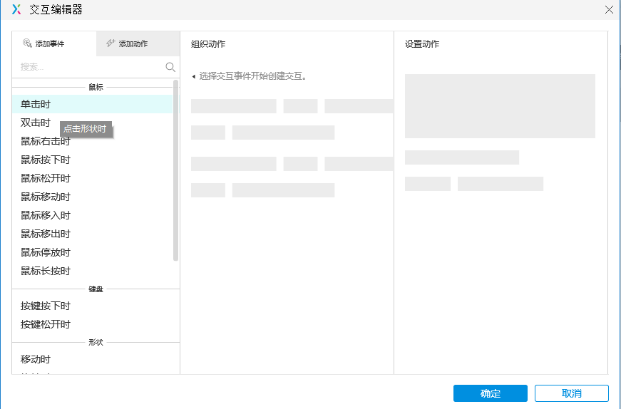 1.选中要设置的按钮,打开交互面板,点击打开详细交互面板