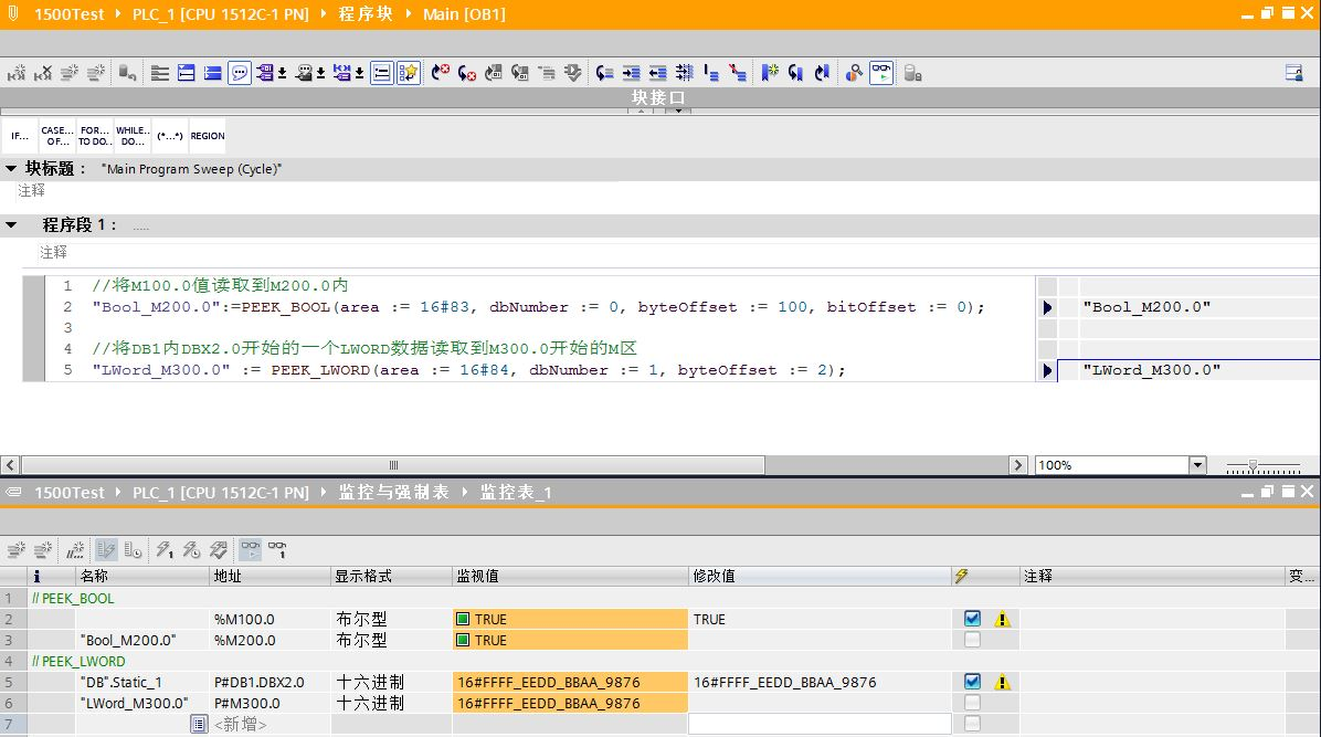 以PEEK_BOOL和PEEK_LWORD指令测试示例,如图3所示。