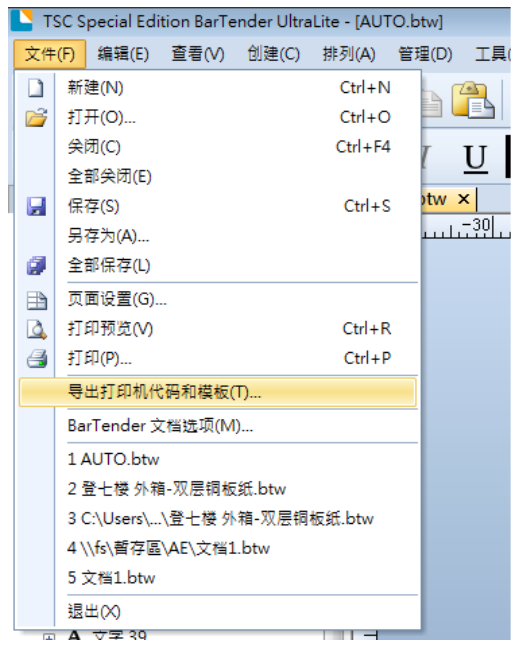 3. 选择导出打印机代码模板选项