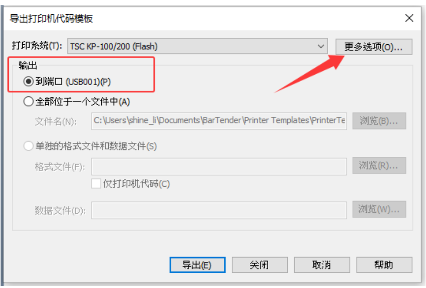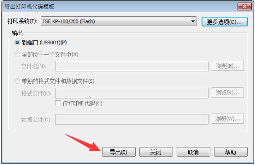 4. 选择 TSC KP-100/200(FLASH)选项, 如果内容固定,直接点击“导出”按钮(跳到步骤 7),如果内