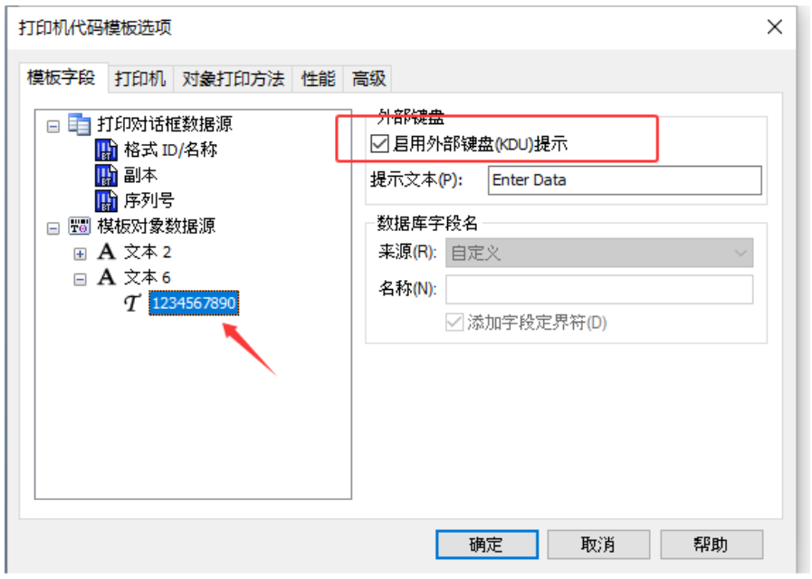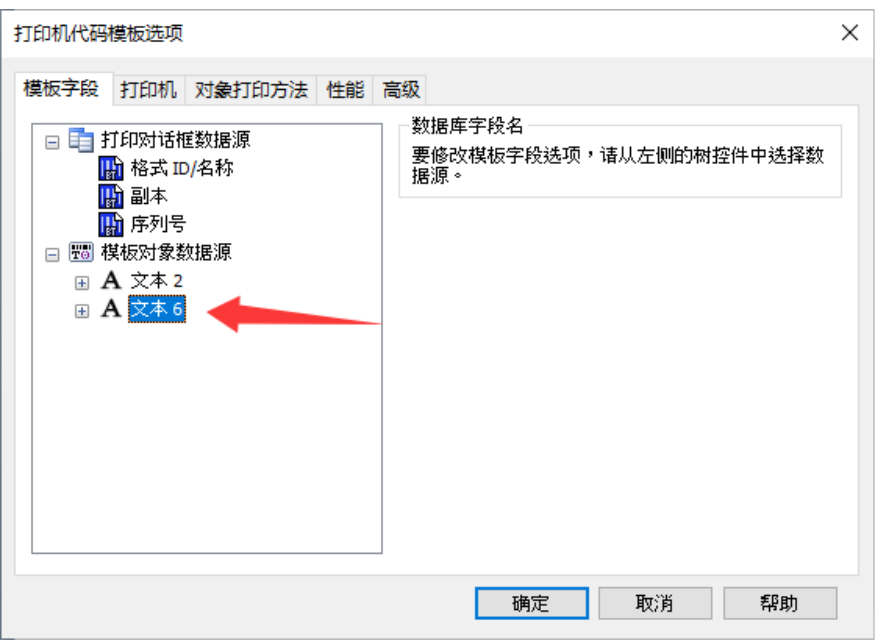选择——打印机代码模板字段 如图: