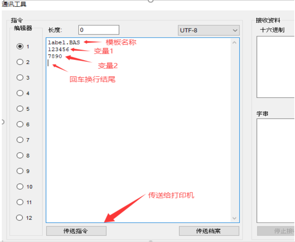 10.补充:label.BTW 模板存入打印机后,想要触发打印 请发送模板名称(加回车换行)给打印机即可