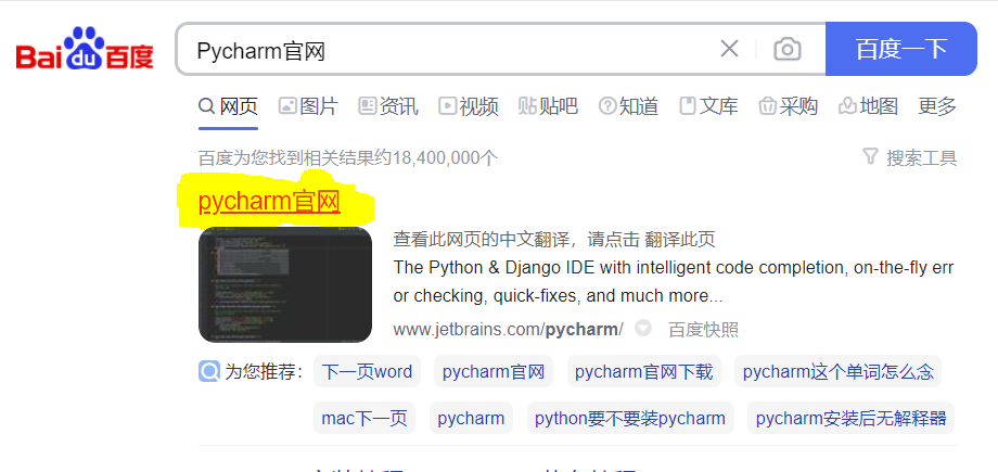 方法二:上百度直接搜索“PyCharm官网”,会看到下面的图片